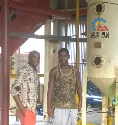 非洲每天10噸精煉油設(shè)備非洲小伙與設(shè)備合影